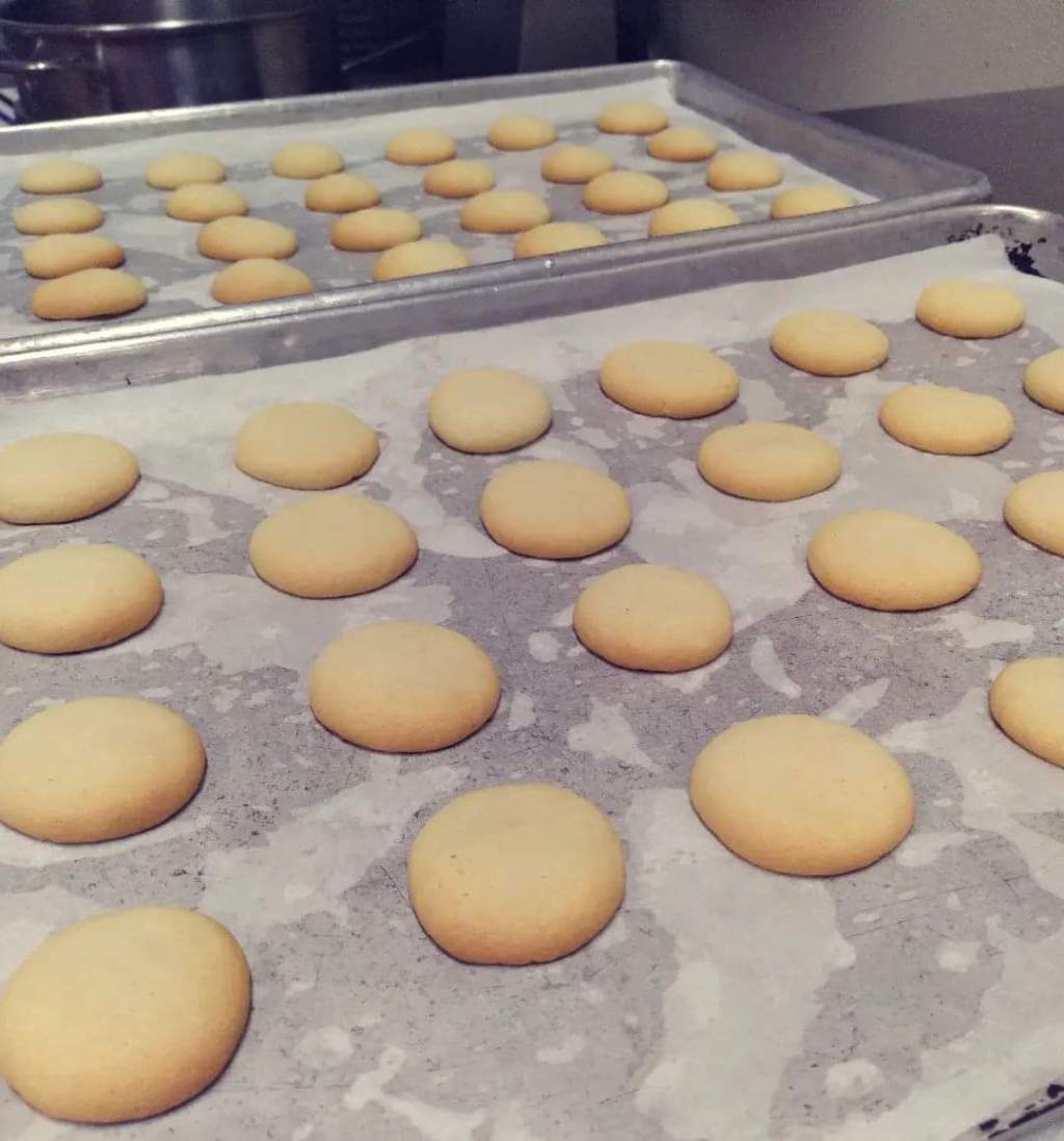 After making sure your dough is as round as possible, cut with a sharp knife into 1/4″ sections. Place 1″ apart on a sheet tray and bake for 8-10 minutes. You should see the edges begin to turn golden brown.
